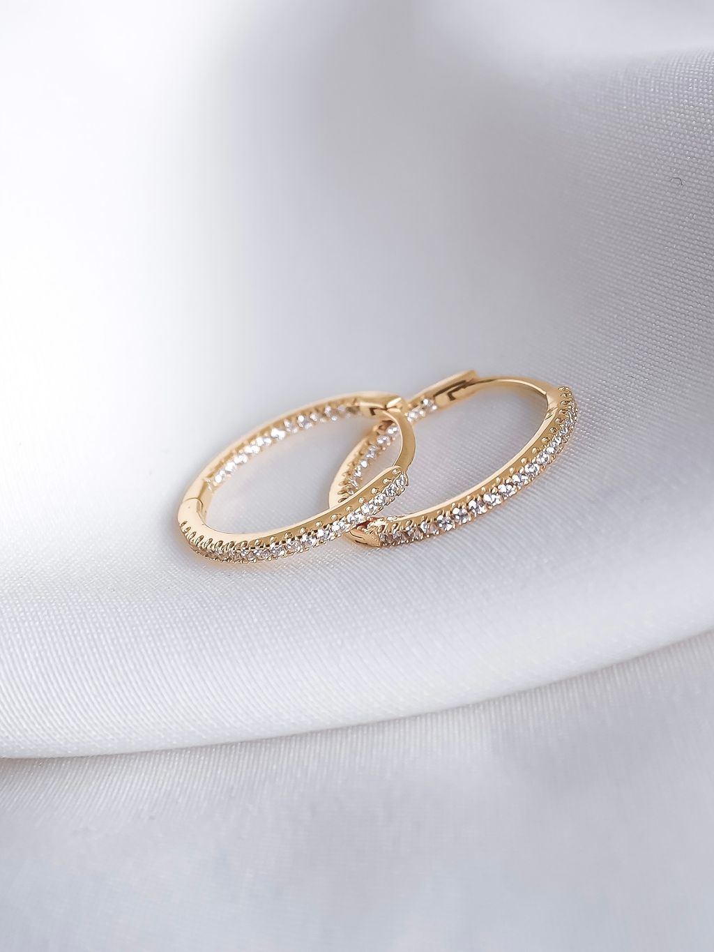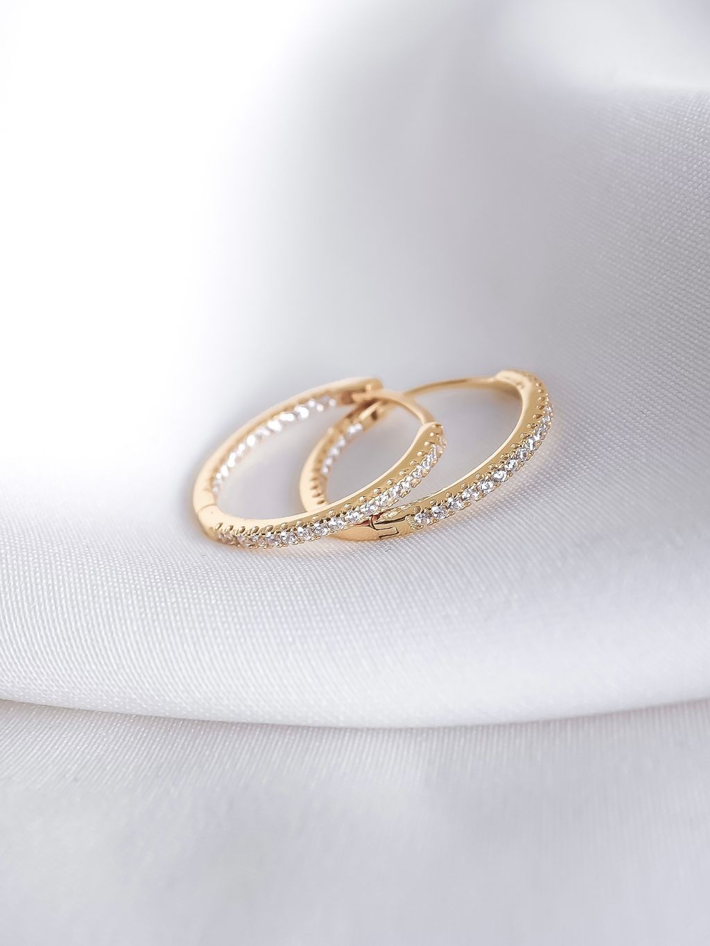 • 日常必備的鋯石金圈純銀鍍金材質抗過敏,中型尺寸時尚又百搭