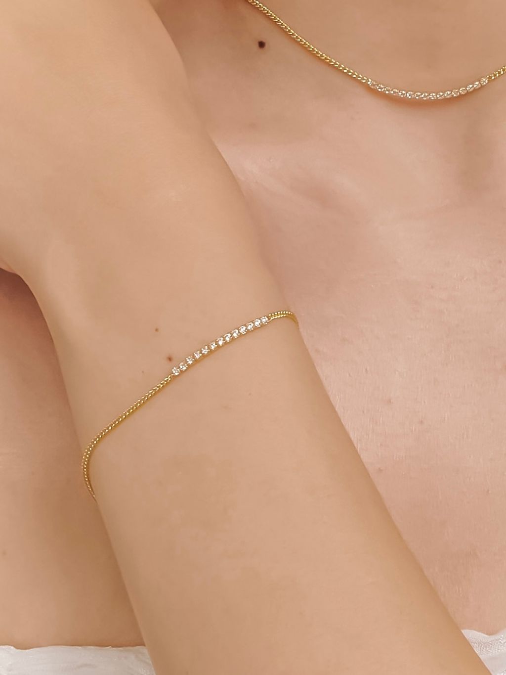 Diamond Box Chain Bracelet 18k 閃鑽歐美扁金手鏈