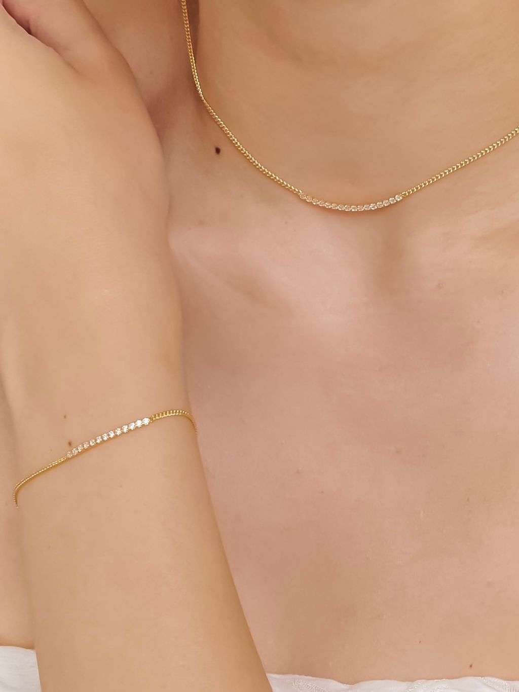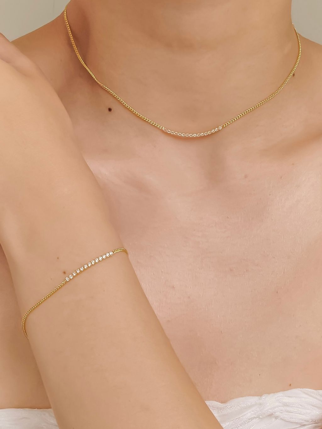 • 簡單的扁金鏈搭配閃耀鋯石,純銀鍍金材質抗過敏,提升穿搭精緻高級感!