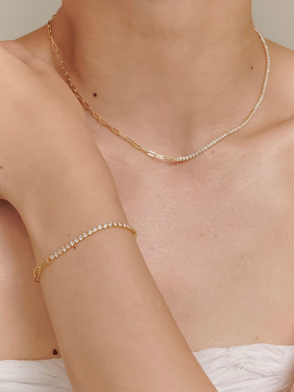 Diamond Mix Gold Bracelet 18k 拼接網球鑽金手鏈