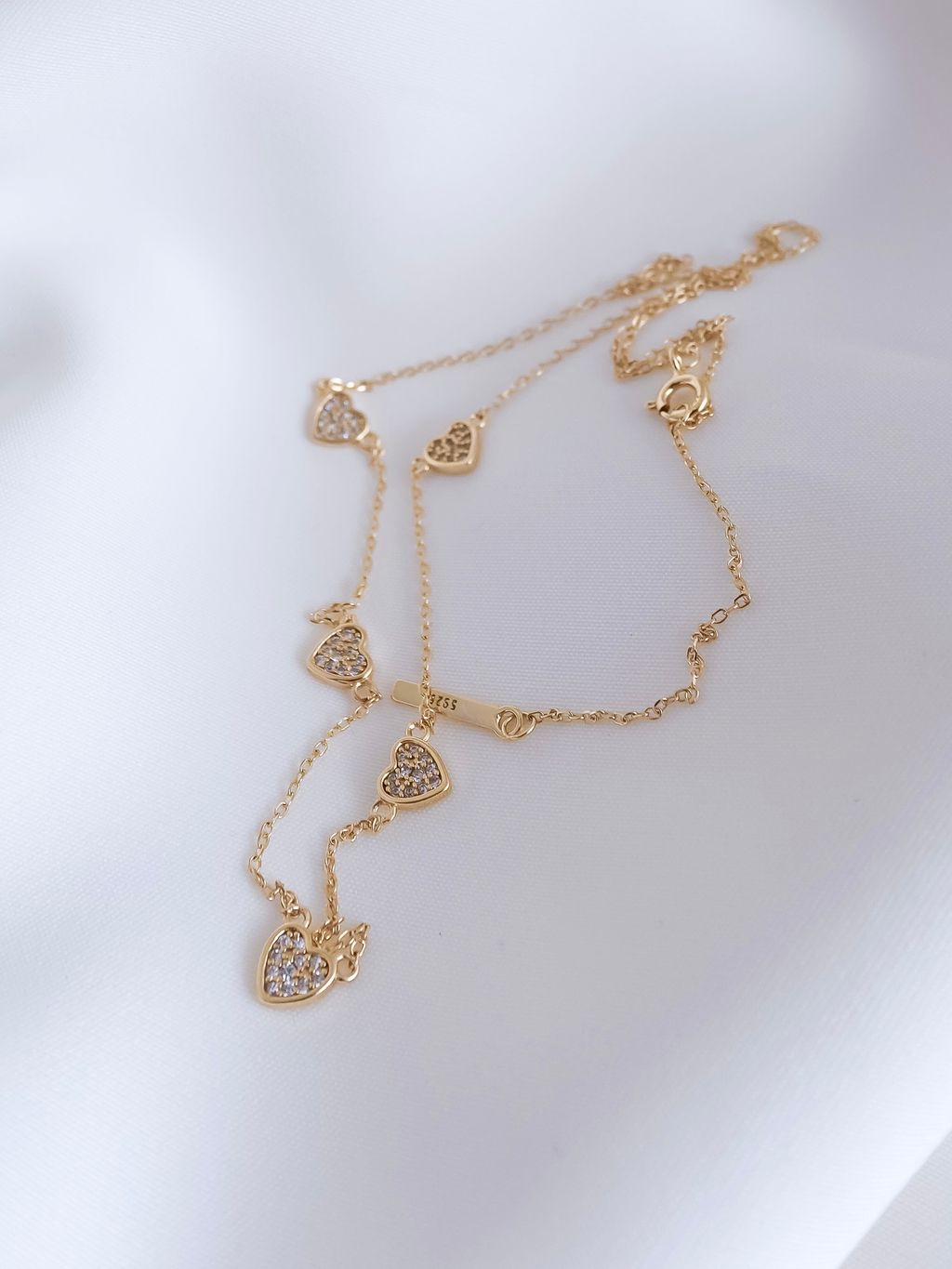 • 多顆滿鑽愛心造型的金項鏈,圍繞頸部的精緻可愛,完整妳的日常時尚穿搭!