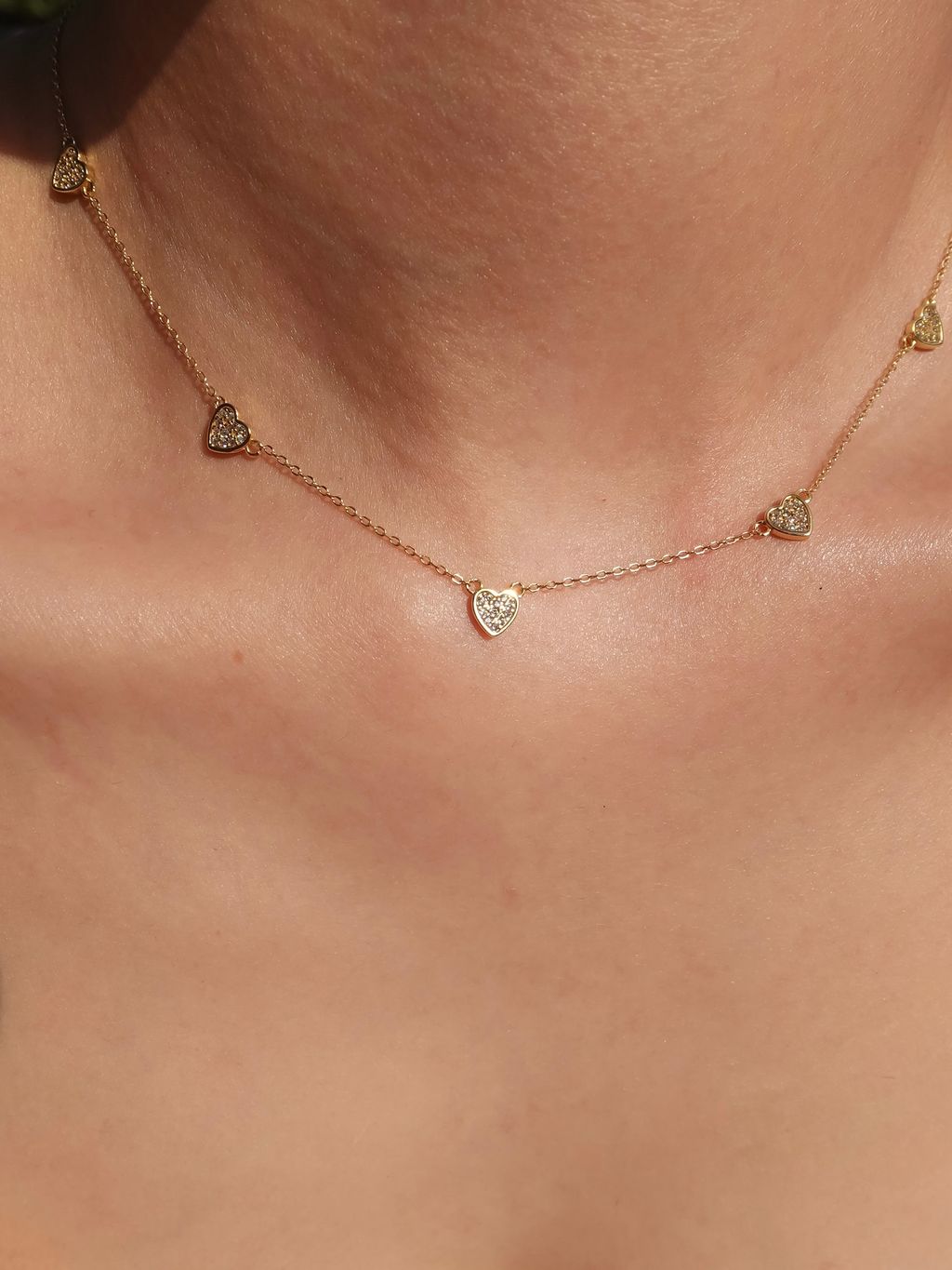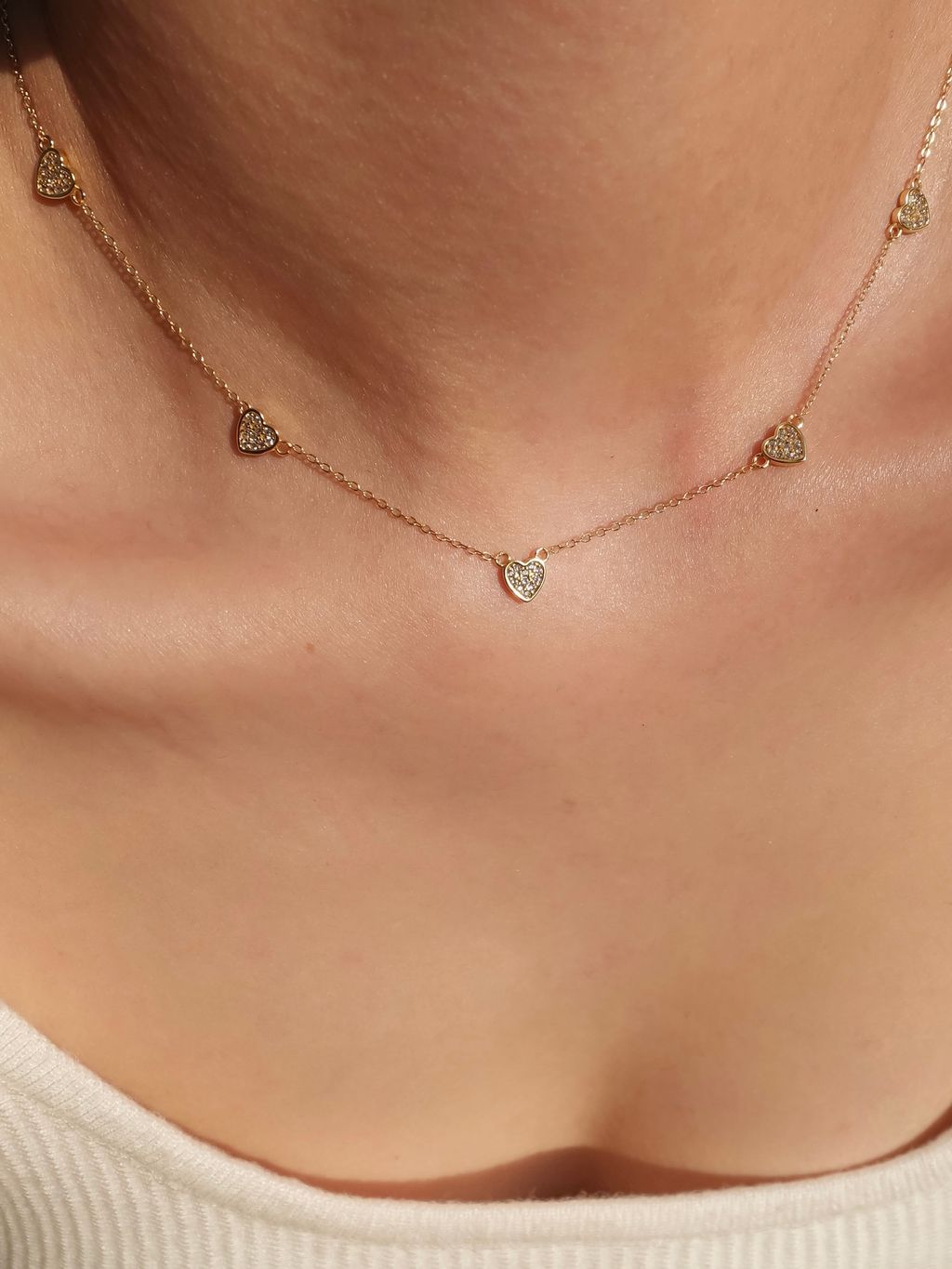 Selene Diamond Necklace 18k 多顆愛心滿鑽金項鏈