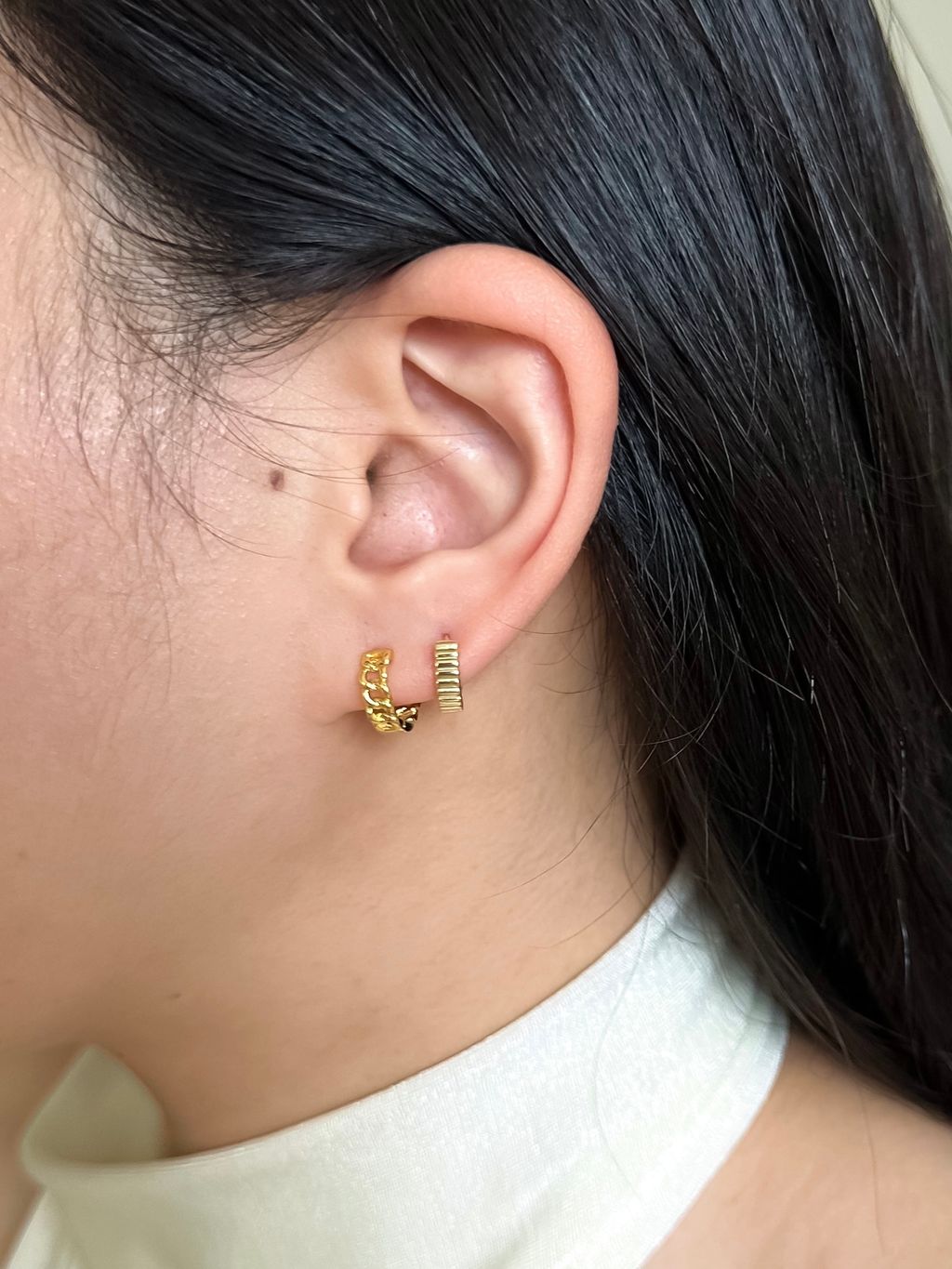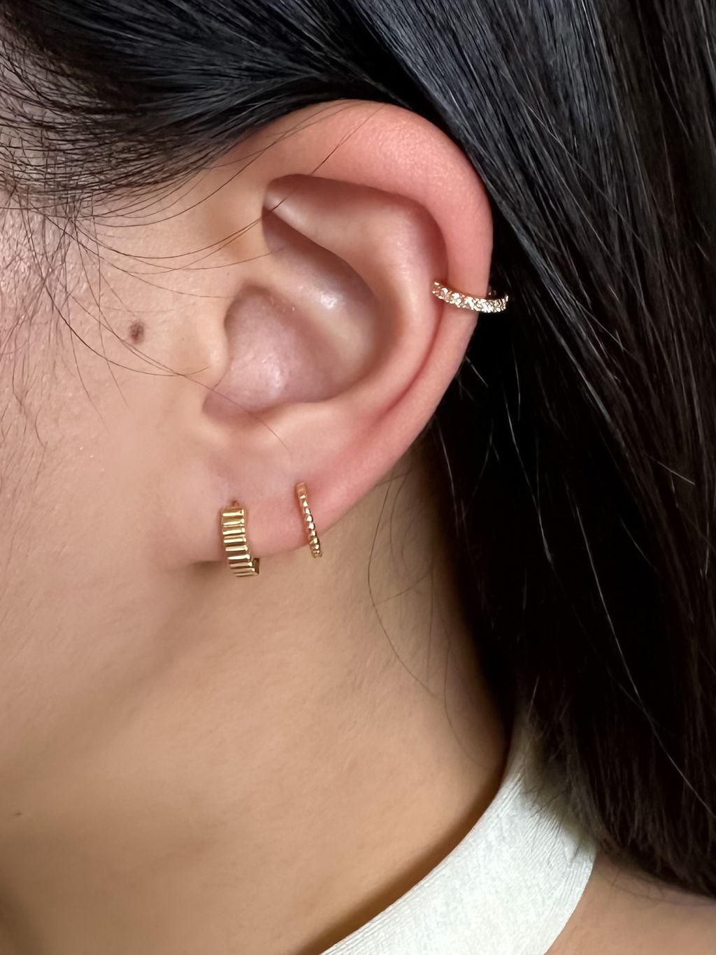 Charlotte Mini Hoops 14k 日常條紋壓紋迷你金圈