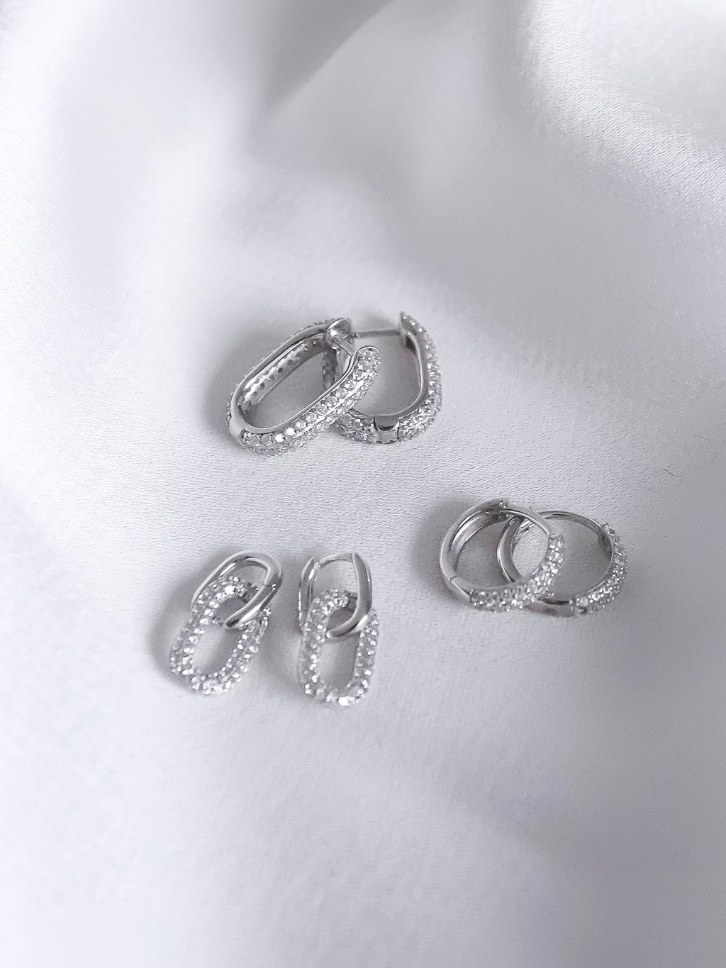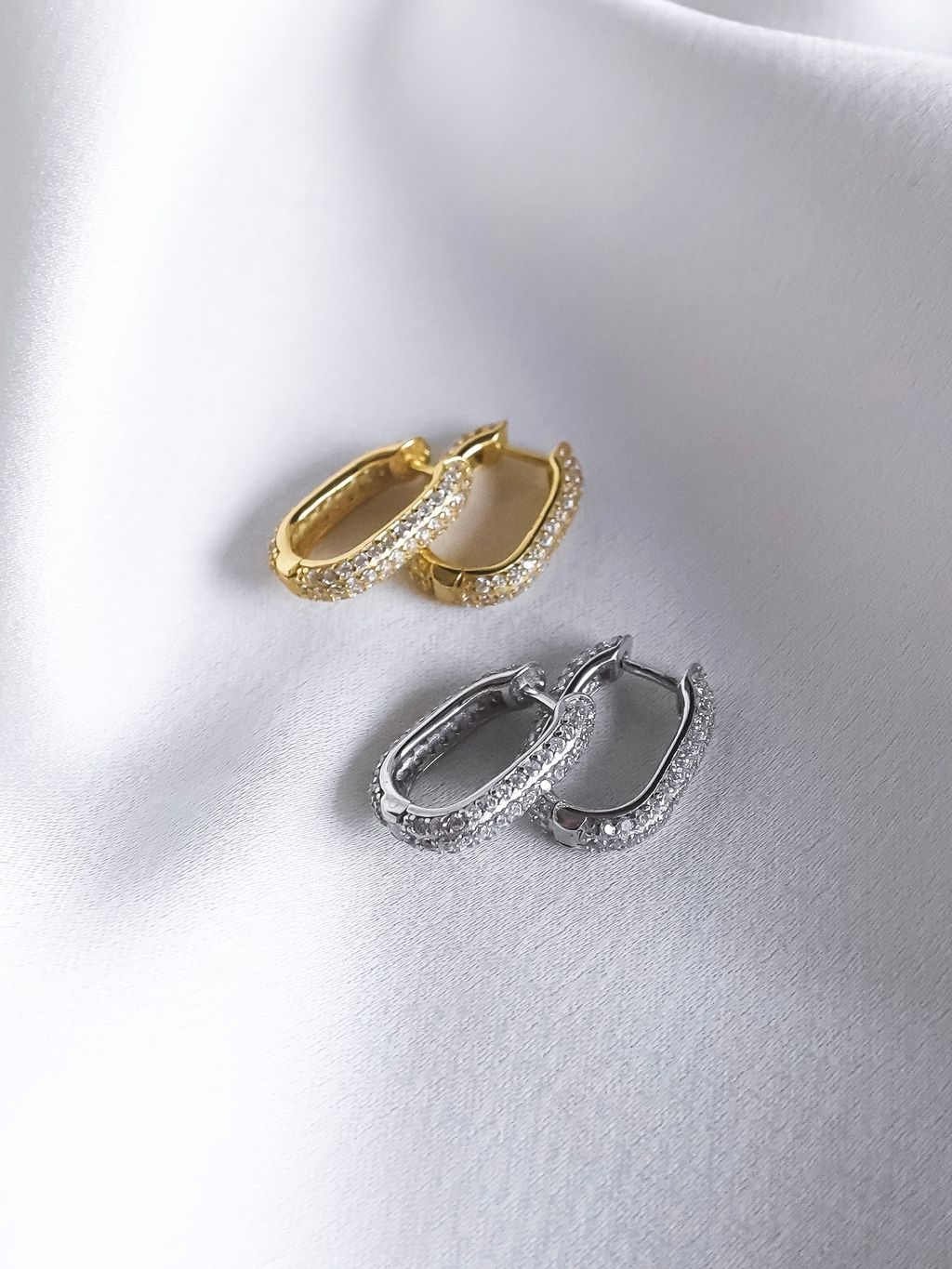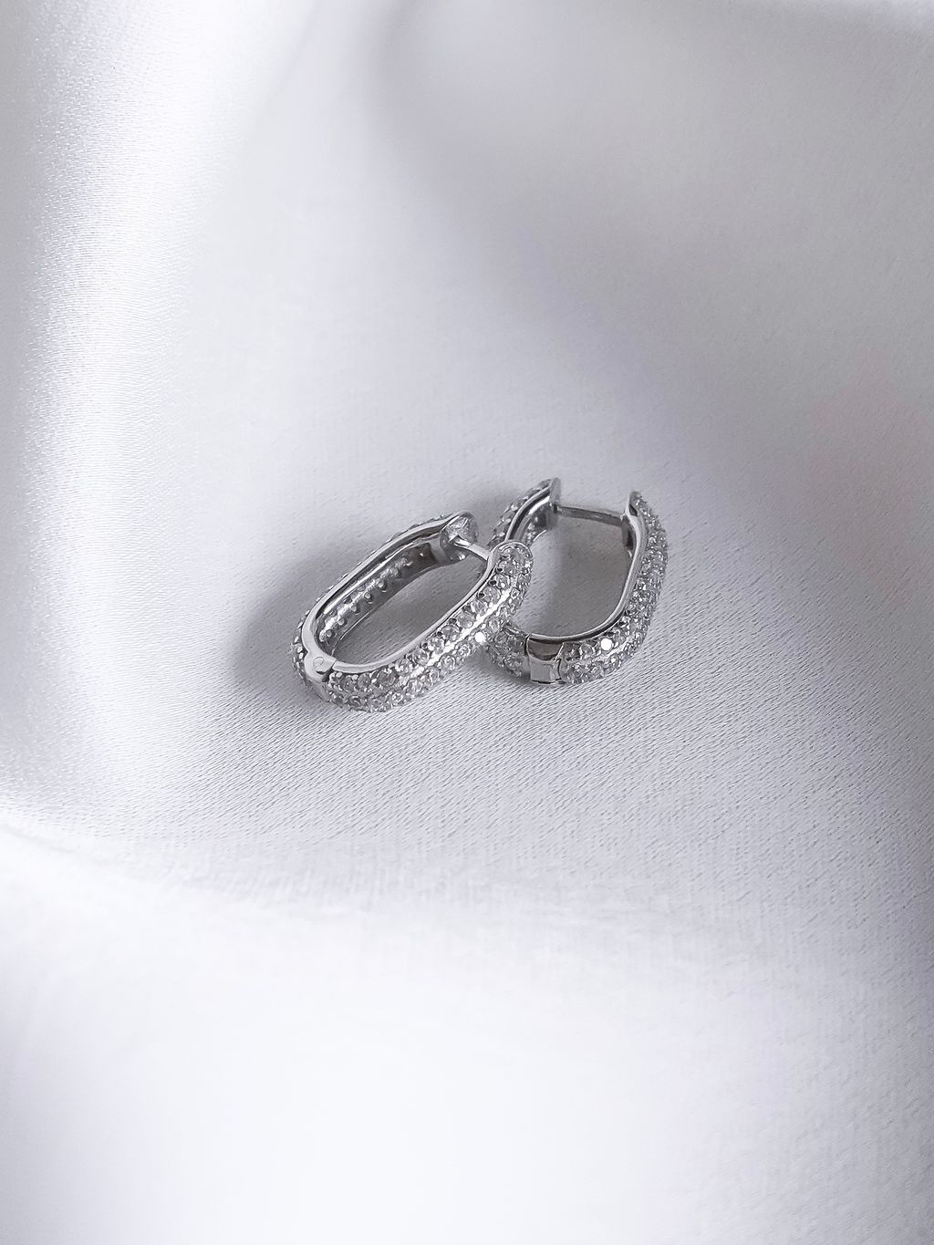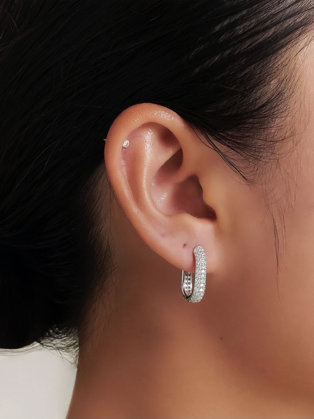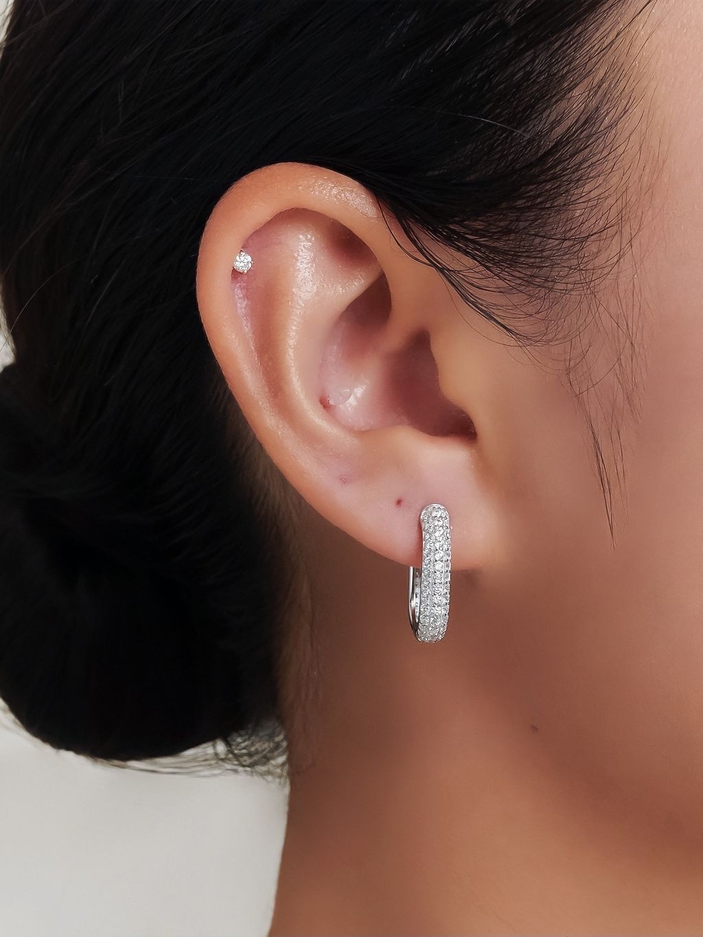 Pave Diamond Silver U Hoops 滿鑽U型純銀耳圈