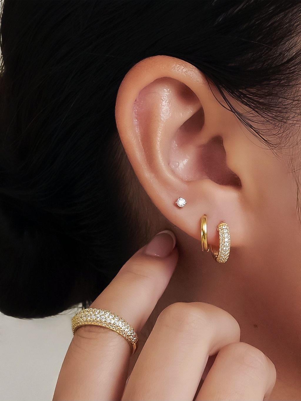 Pave Round Hoops 18k 滿鑽小圈金耳環