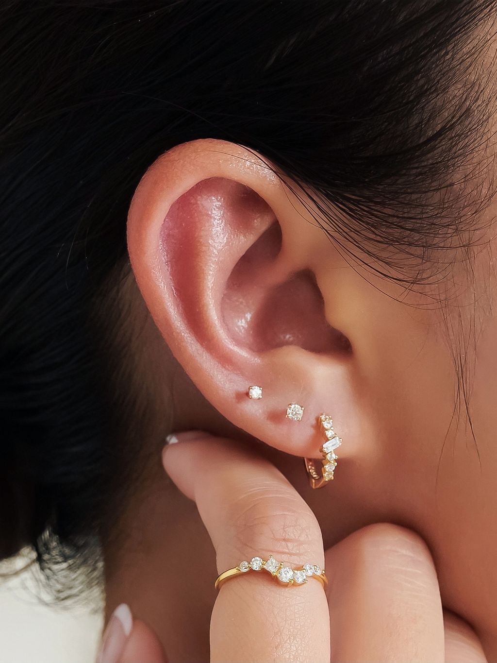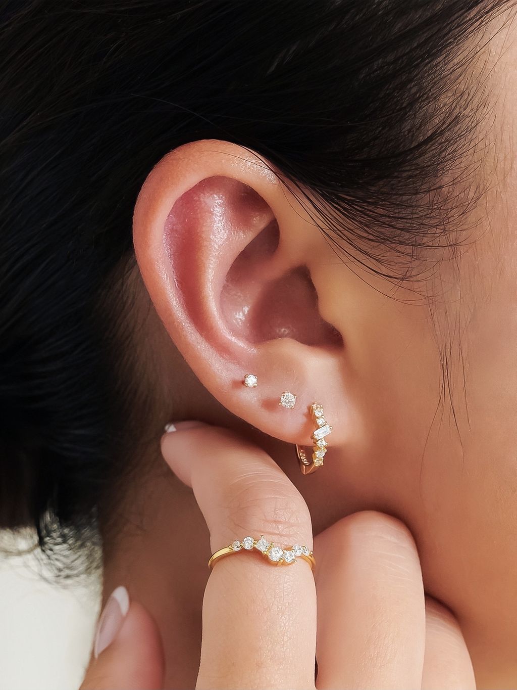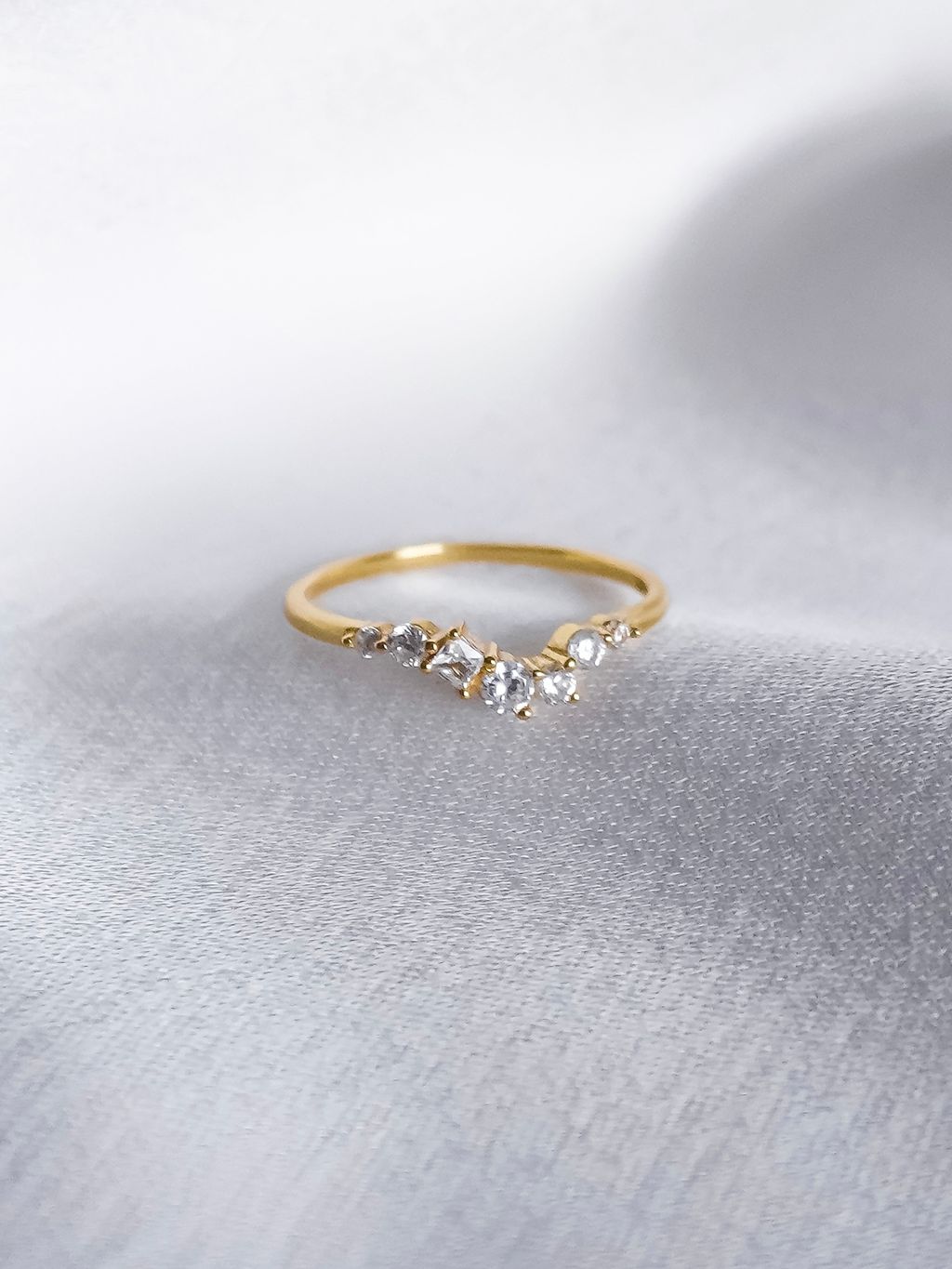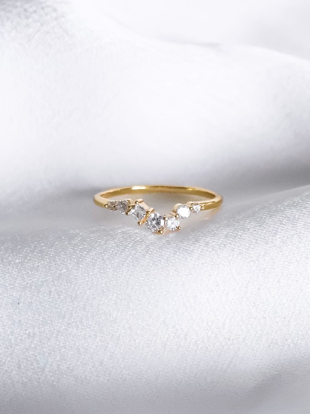 • 鑲上多顆不規則鋯石的金戒指,和妳一樣閃耀又精緻的存在!