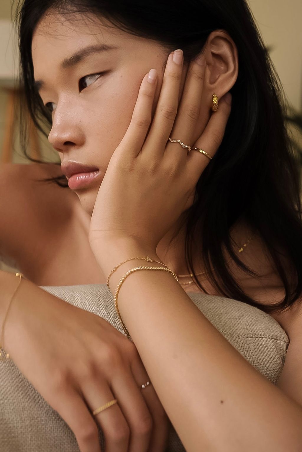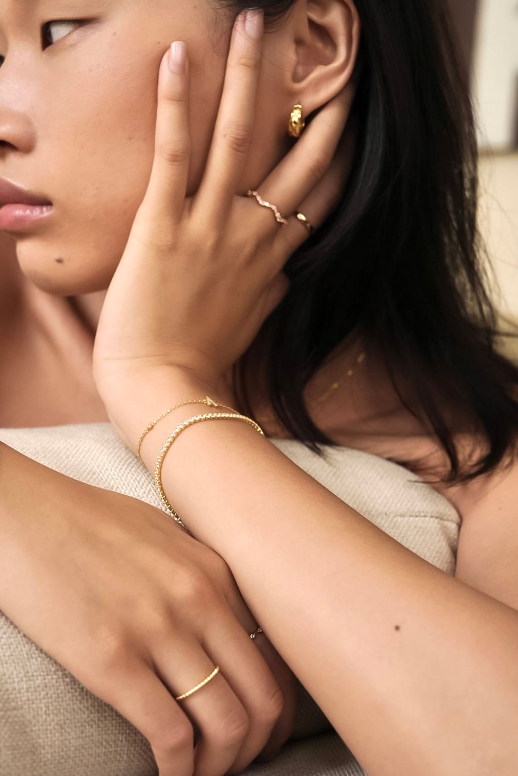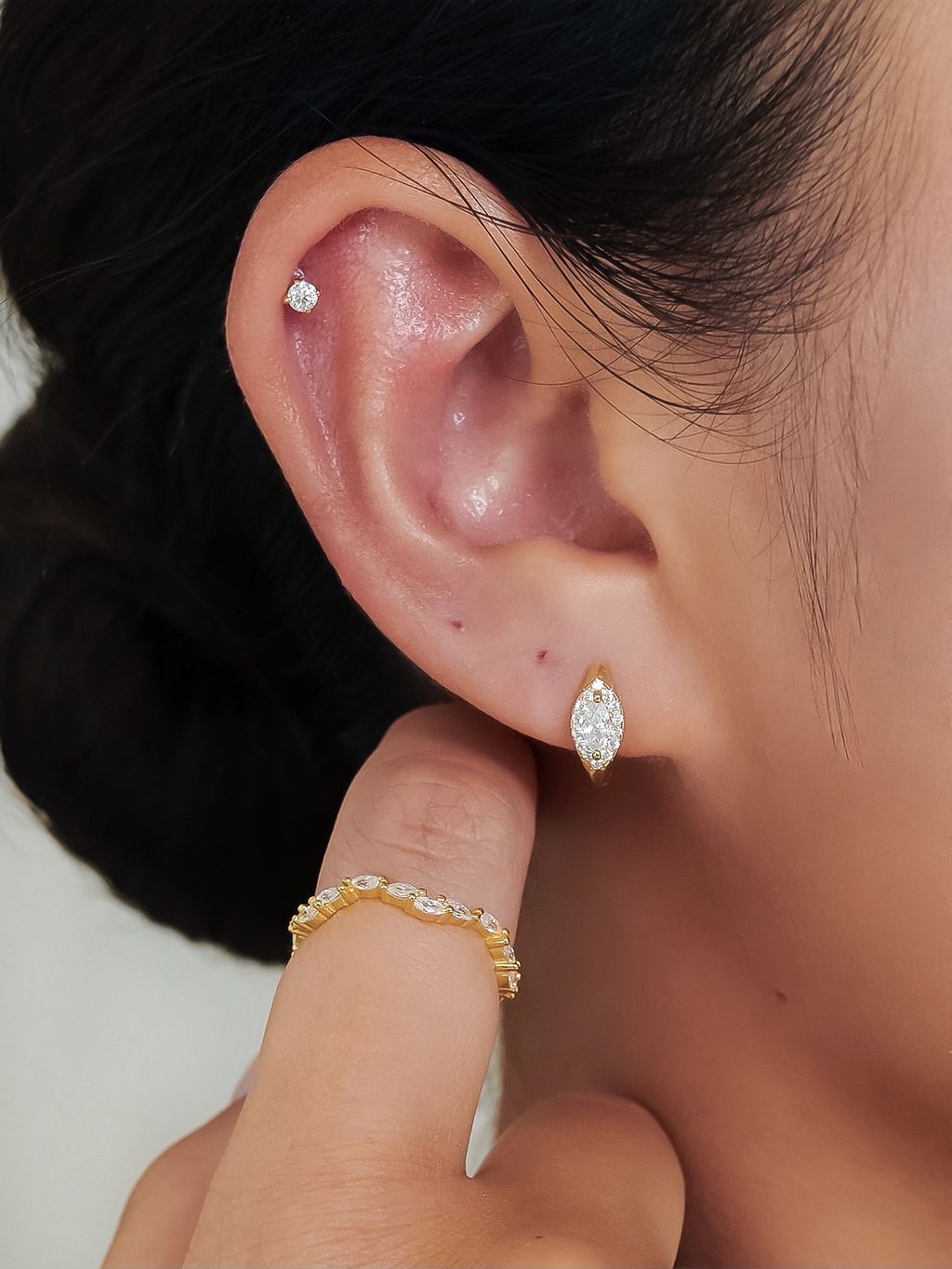 • 鑲上鋯石的波浪馬眼金戒指,單戴或疊戴搭配出妳的日常精緻感!
