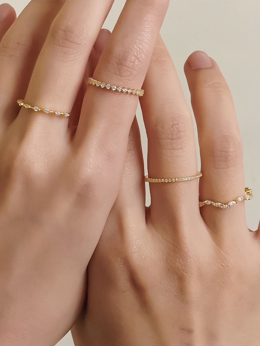 • 精緻的鋯石細戒指系列,戴上指間讓每天的日常質感加分,隨意疊戴完整妳的穿搭時尚!