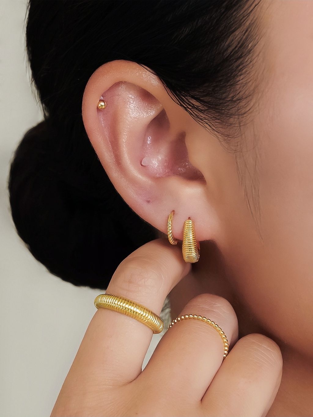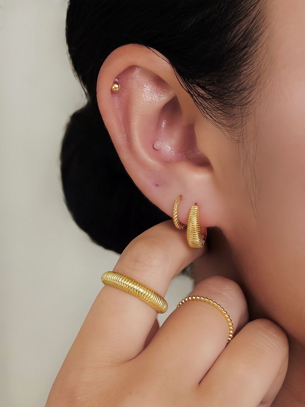 • 基本款細金戒,戴上指間讓每天的日常質感加分,隨意疊戴完整妳的穿搭時尚!