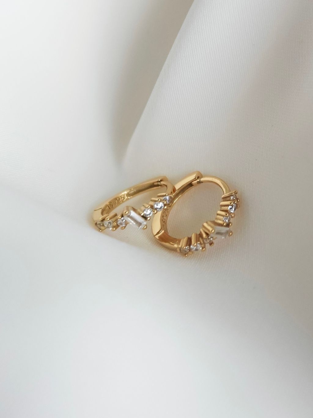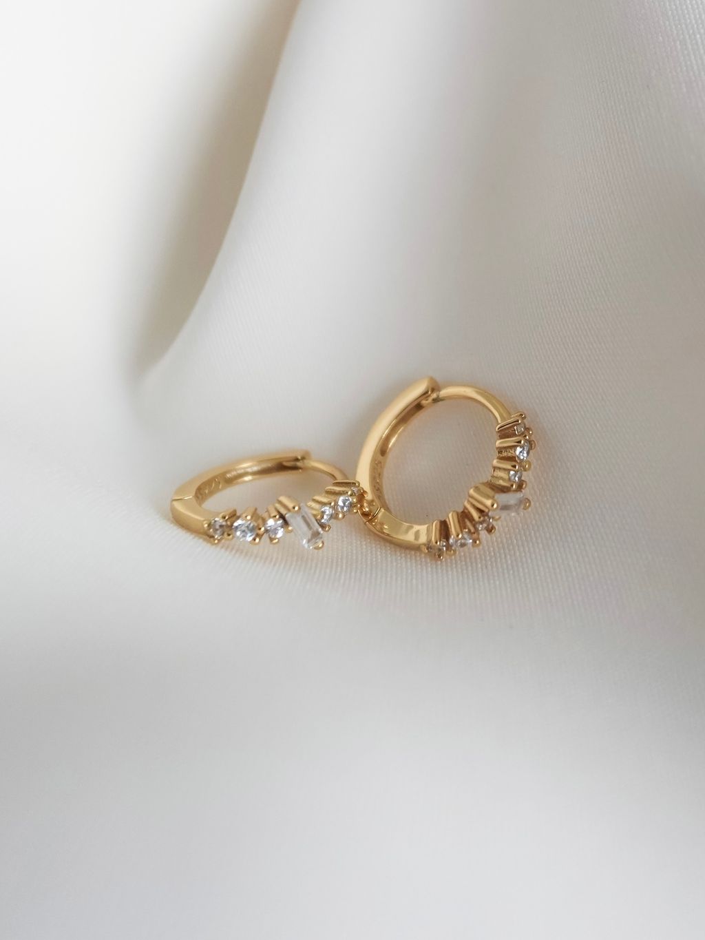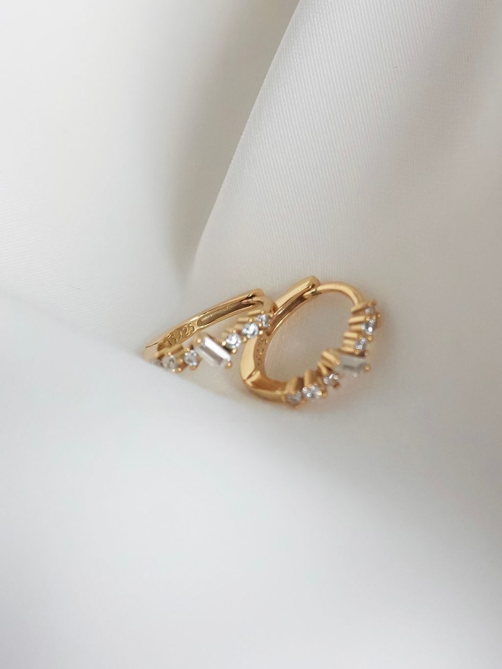 • 多顆不規則排鑽鋯石金圈,讓妳的日常穿搭低調又有質感!