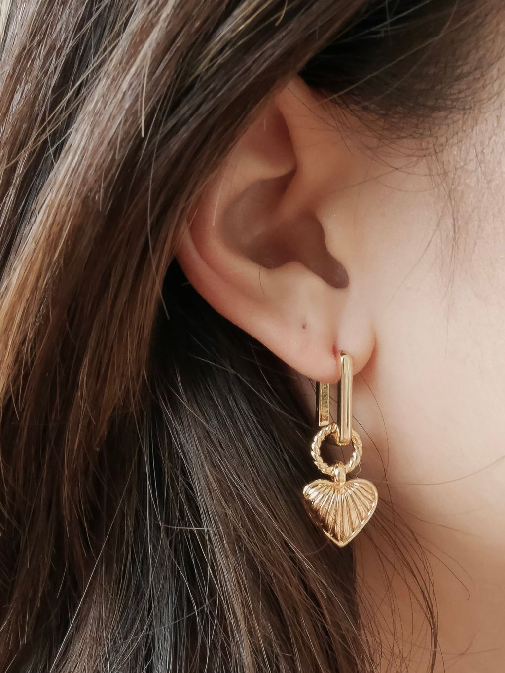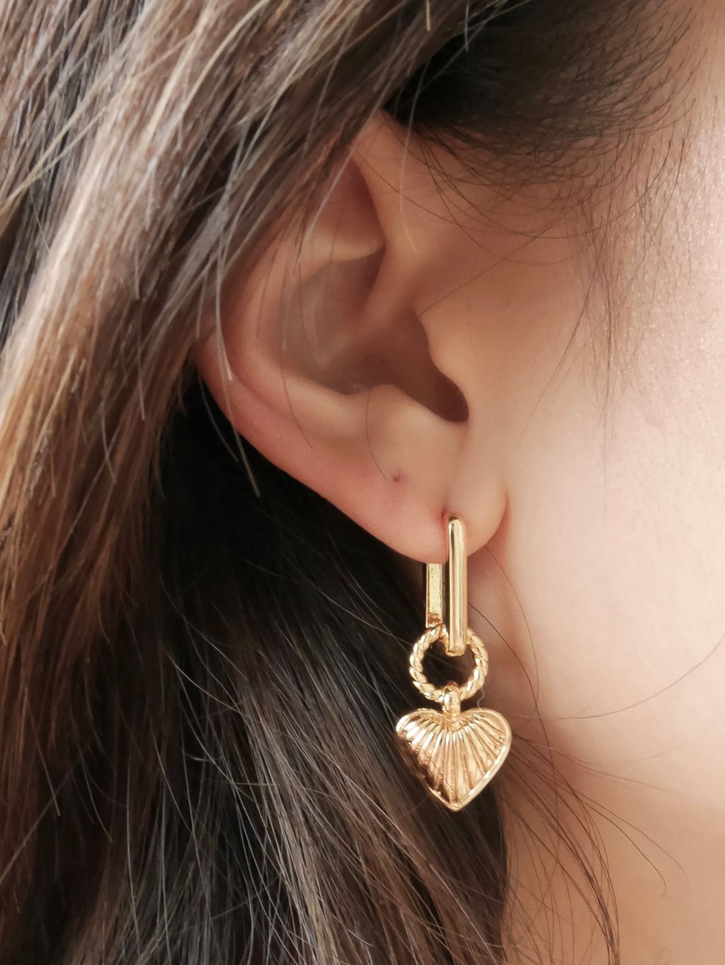 Gold Heart Drop Earrings 18k 復古垂墜愛心耳環