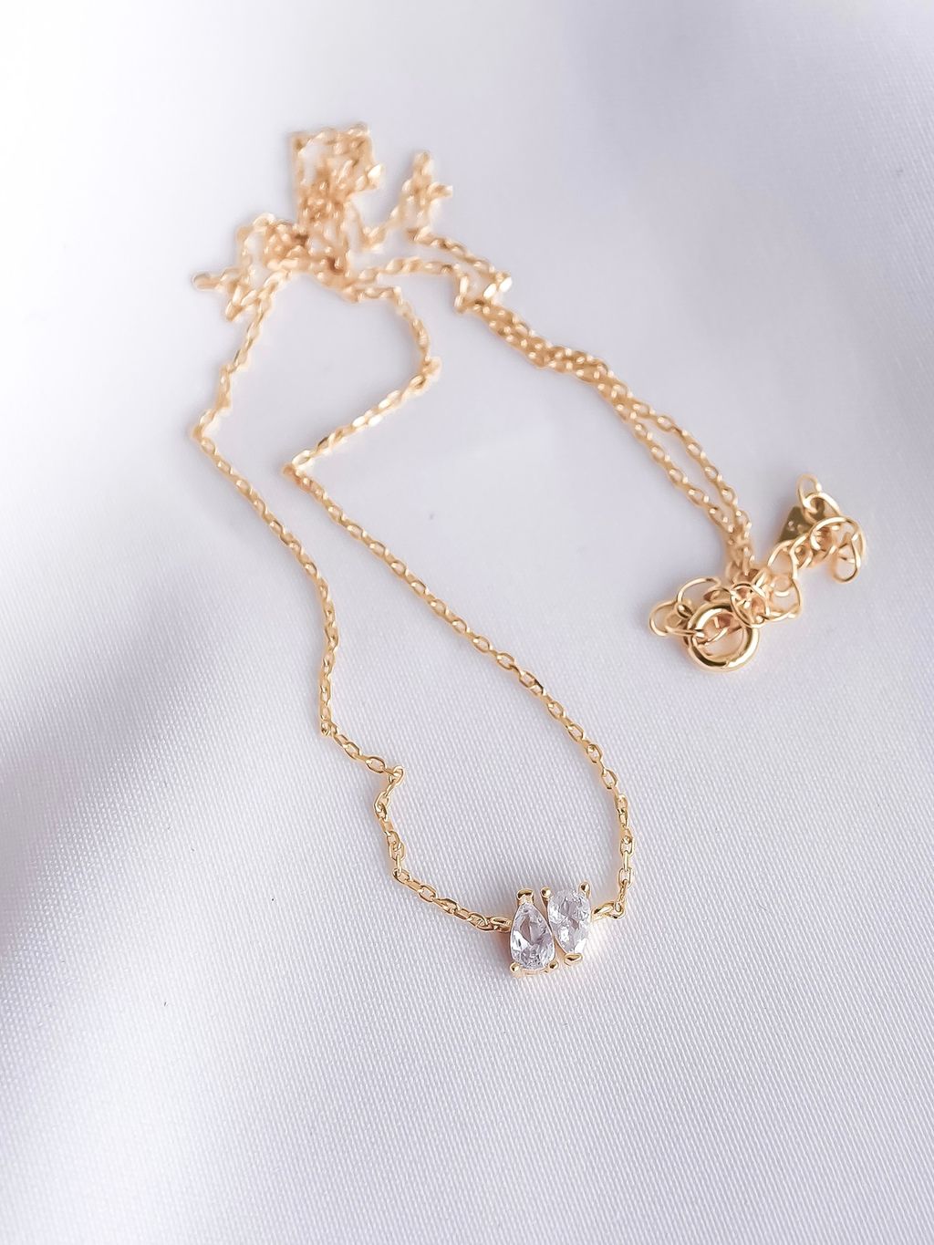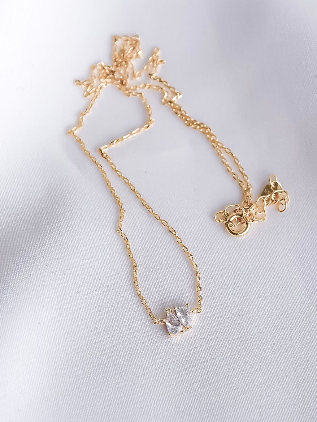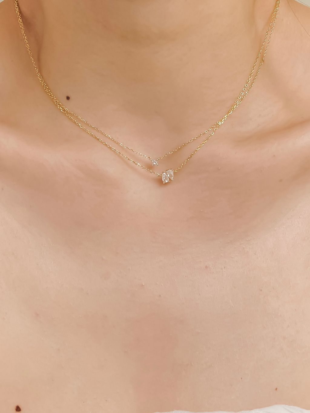Duo Drop Diamond Necklace 18k 水滴雙鑽鎖骨金鍊